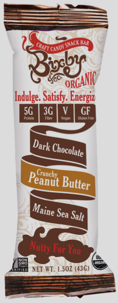 Manufactured in a historic refurbished ice factory on the waterfront in scenic Rockland, Maine, the organic Nutty for You bar was singled out by the Good Food Awards for its superior taste, nutritional value and commitment to social responsibility. According to McAleer, the 1.5oz Nutty for You bar has five times as much protein (5g/serving) and four times as much fiber (3g/serving) as most standard candy bars. In addition to its organic certification, the Nutty for You bar also is certified Kosher, Non-GMO Verified, certified Gluten Free, and Rain Forest Alliance™ certified. All Bixby Bars are made without corn syrup, palm oil, artificial flavors, artificial colors, preservatives or additives.